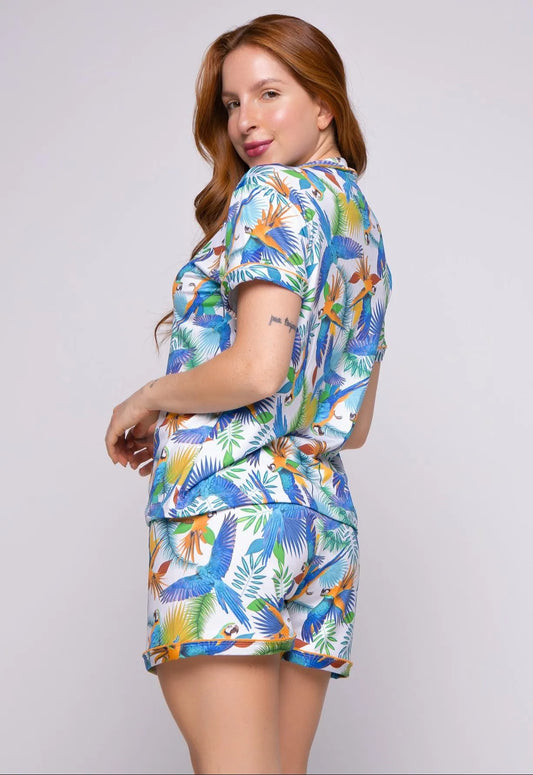 Pijama Curto Americano Suede - Arara Colorida Estampa Digital