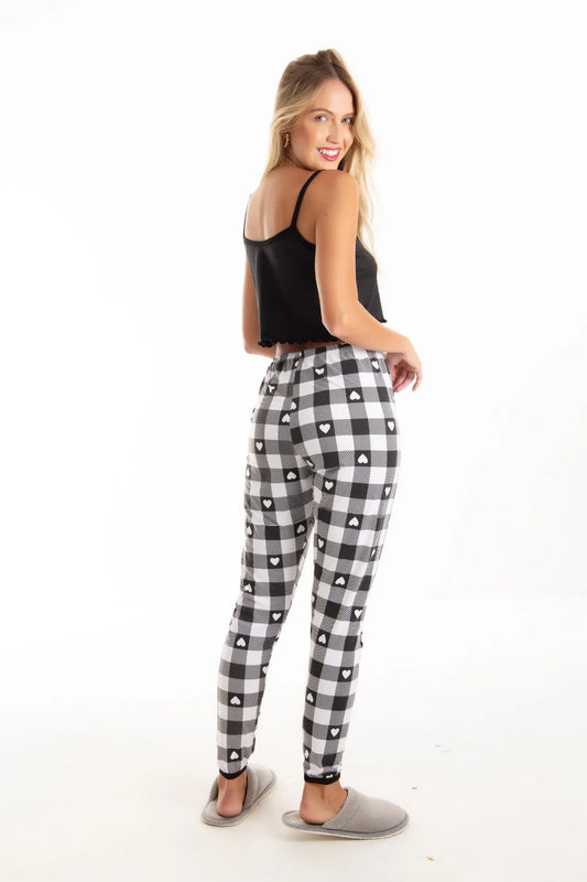 Pijama cropped com calça- Xadrez coração