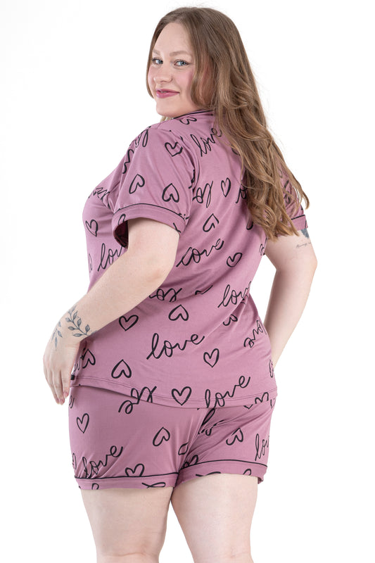 Pijama americano curto plus size- Love Rosa